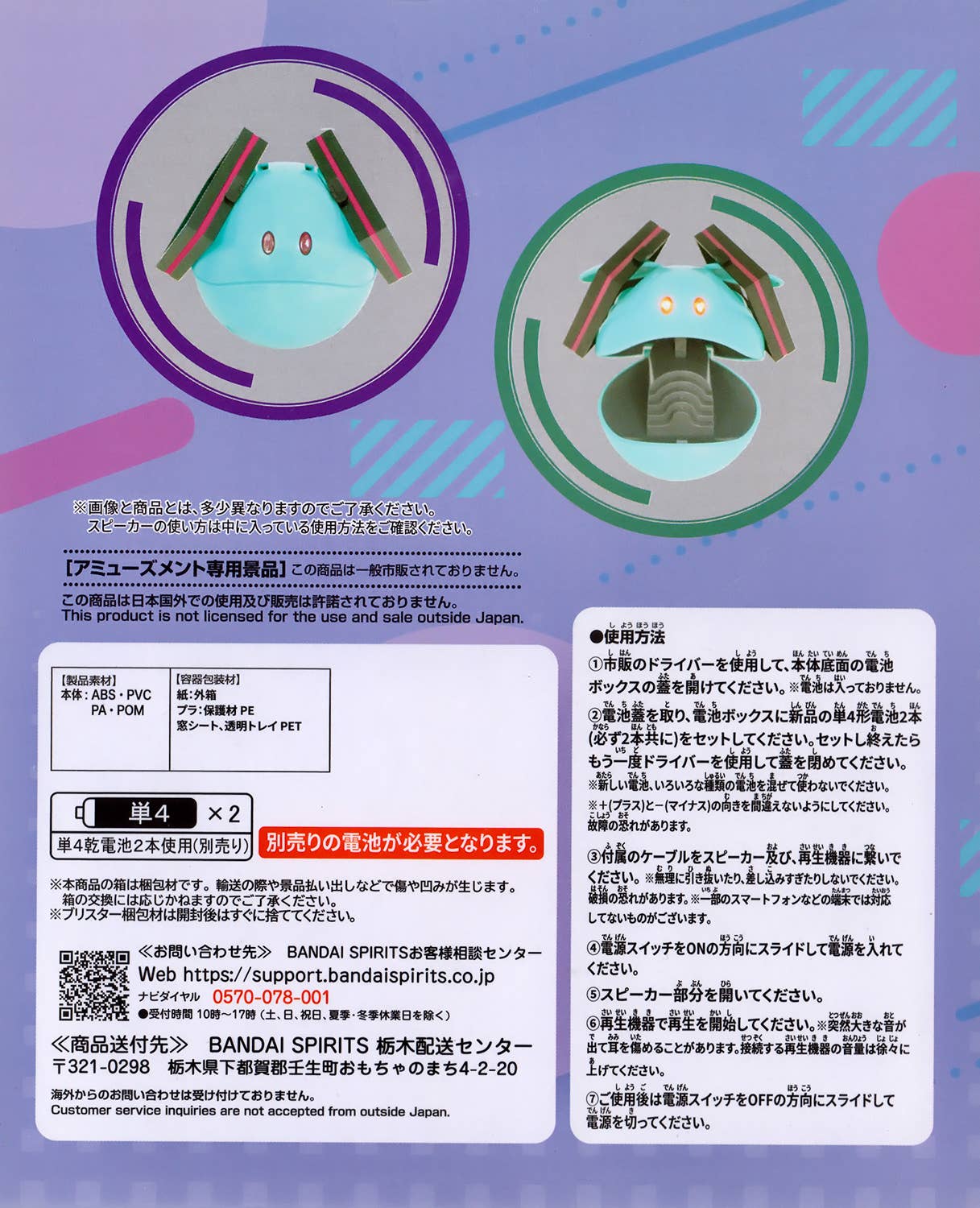A Haro speaker celebrating Gundam's 45th anniversary in collaboration with Hatsune Miku is here! Switch it on to light up Haro's eyes, and connect it to your PC or smartphone to play sound from the mouth speaker.
