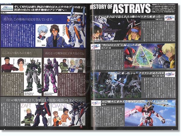 The "Gundam Seed Frame Astrays" official side story serialized in Dengeki Hobby Magazine is now compiled into book form! Volume 1 contains chapters on the history of Astrays, character and mecha profiles, photo stories, Bandai's Astray-related plastic kits, and the first five chapters of the "Gundam Seed Frame Astrays" manga. All text is in Japanese. Softcover. 150 pages (68 in color).