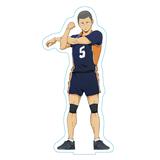 Here's a standing character panel of Ryunosuke Tanaka from "Haikyu!!" He's posed stretching one arm across his chest.