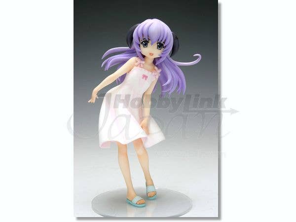 Transfer student Hanyu from "Higurashi no Naku Koroni" laughs while the wind stirs her lavender hair and her pearly pale-pink dress. Permanently mounted to her round base, she's about 18cm tall. Add her to your collection today--and don't forget the figure of her friend Rika Furude, linked below!Please note that the photos shown are of a prototype; the production version may vary. Also, figures such as this are mass produced and as a result some inconsistencies in finish and painting may occur; these are not considered manufacturer's defects. If you absolutely must have perfection, prepare to do some touch-up work on your own.