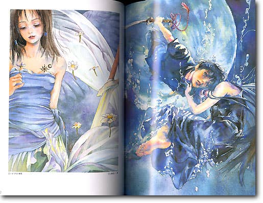 A beautifully done artbook of artist Hasumi Miyako's work. Features cut-out overlays for many of the pages. Perfect for fantasy lovers. Softcover. About 25 x 19cm in size.