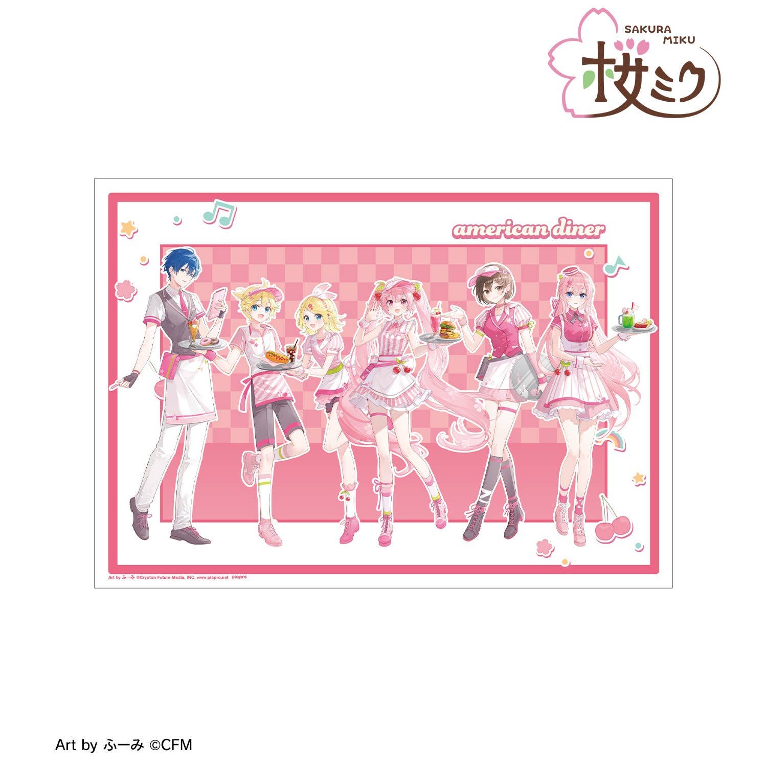 Collaboration item of 'Sakura Miku' x "ROUND1": "Newly Drawn Group Art by Fumi American Diner ver. A3 Matte Poster" is here.