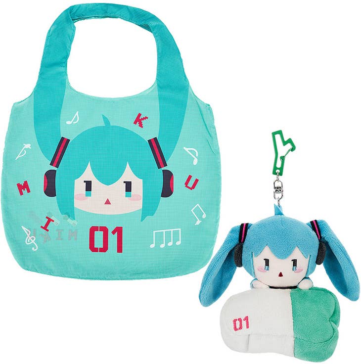 This amazing reusable bag features a super-cute Hatsune Miku design! Open up the leek attached to the Miku plushie to reveal a reusable tote bag that's perfect for trips to the grocery store, bookstore, library and more! Sling the bag over your shoulder, and the plushie of Miku will ride along on your shoulder too! A leek-shaped carabiner keeps it within easy reach. You'll love it -- place your order today!