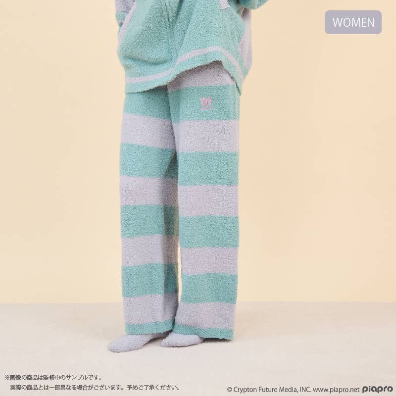 Knit Factory collaborates with Hatsune Miku to bring us a pair of super-snuggly long pants! They've got embroidered accents on the right hip and thigh; the convenient design also has an adjustable waistband and side pockets. They're perfect to wear around the house on a cold winter's day -- and they're perfect for naps, too! You'll love them -- order yours today!