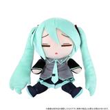 This huggable stuffed plush toy of Hatsune Miku is sweetly sleepy! She'd probably really enjoy sitting on your collection shelf so she can get some rest. Order her for your own collection today!