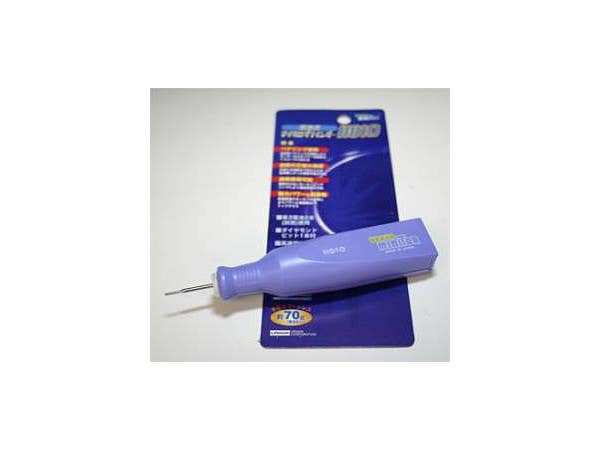 A handy-dandy battery-operated micro grinder for all your hobby needs...and it's purple! Requires two AA batteries; not included. Operates at 10,000rpm. Set includes one grinder bit, but it can accept any bits or accessories with 2.34mm shafts.