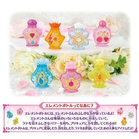 From "Healin' Good Precure" comes Bandai's set of three element bottle set! This set comes with a bottle of fruit, ice, and lightning element bottles. Each bottle includes a shiny gem for eye-catching shine. Order today!