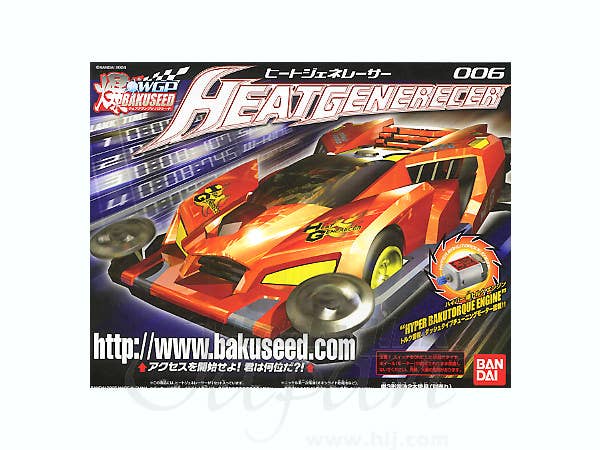 Unassembled and unpainted 4WD model kit from Bandai's Bakuseed series of SF-styled cars. Powered by a "hyper bakutorque engine" for racing on or off of official Bakuseed tracks. Non-scale, but car is roughly 16cm long. Requires two AA batteries (sold separately). Snaps and screws together, so no glue is necessary (you'll need a small philips head screwdriver, though). Includes a sheet of self-adhesive stickers. Molded in red, black, and yellow, which coupled with the colorful stickers means you can build a sharp-looking racer with no painting at all.