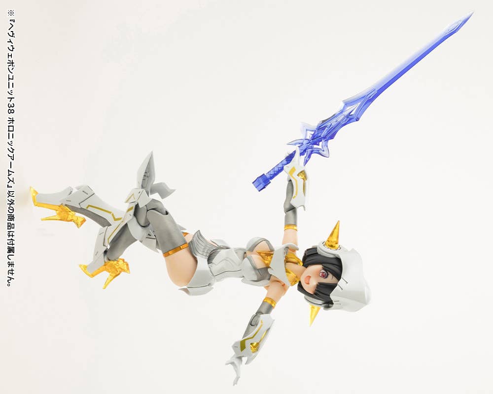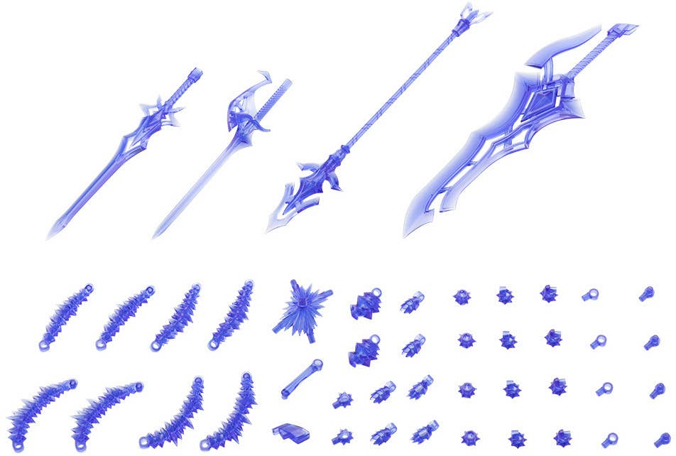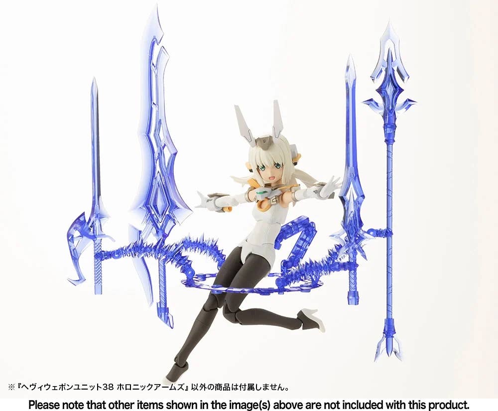 Kotobukiya's "Heavy Weapon Unit 38 Holonic Arms," made entirely of clear parts, is back! Each weapon is made of multiple surfaces that take full advantage of clear molding, and each has a design that reflects light in a glittering way! These weapons and effect parts are perfect for situations calling for the use of energy or magic; shooting effect parts are included too. Four types of weapons are included, as are effect arms and joints; the two swords and two greatswords can be connected to make a double-edged sword. The 3mm joints allow you to combine and rearrange the weapons, too. The effect parts can be combined with a base that can be connected in four directions, and a wide variety of joints are included. You can also use these items with other "M.S.G" units molded with clear parts! Order yours today!