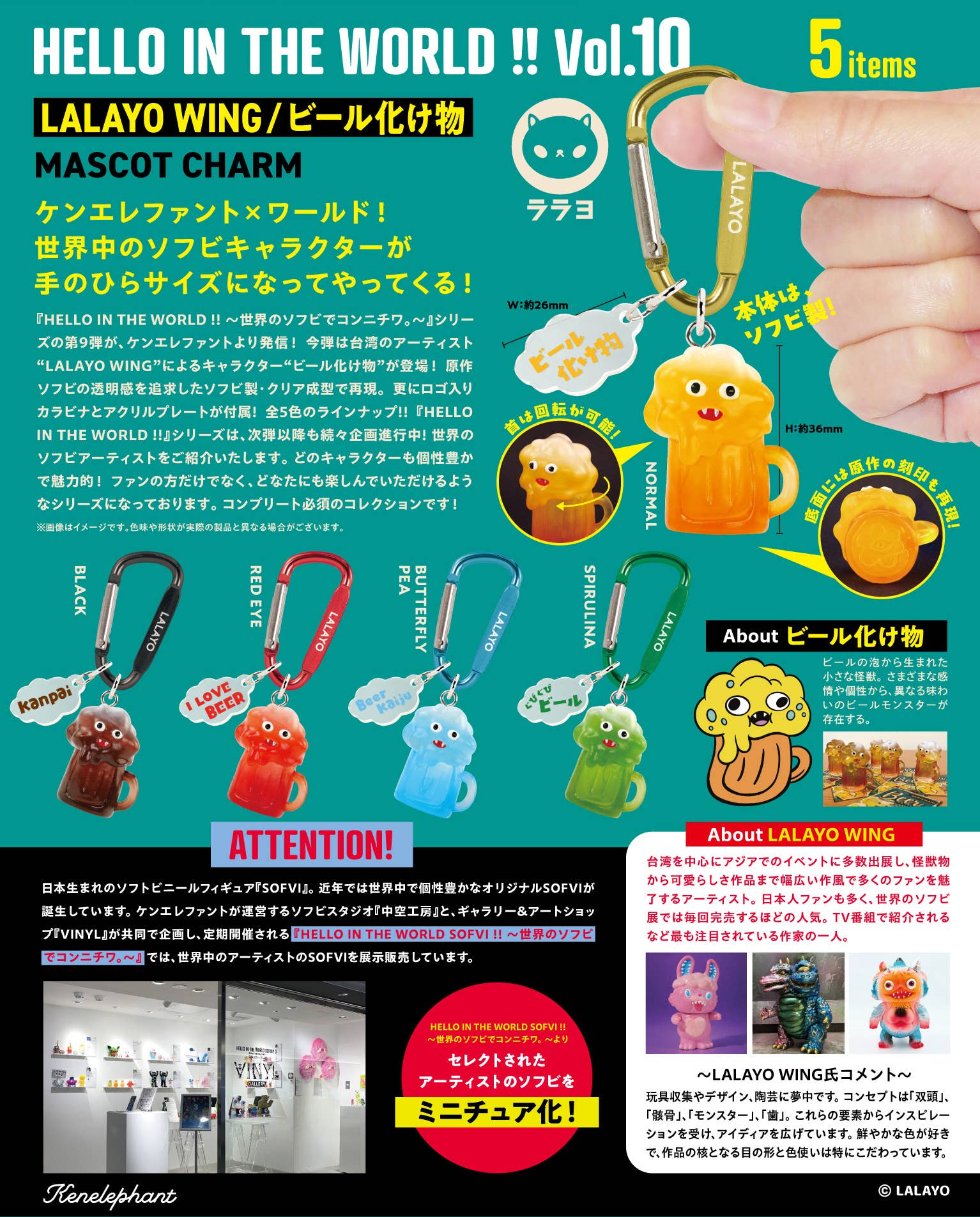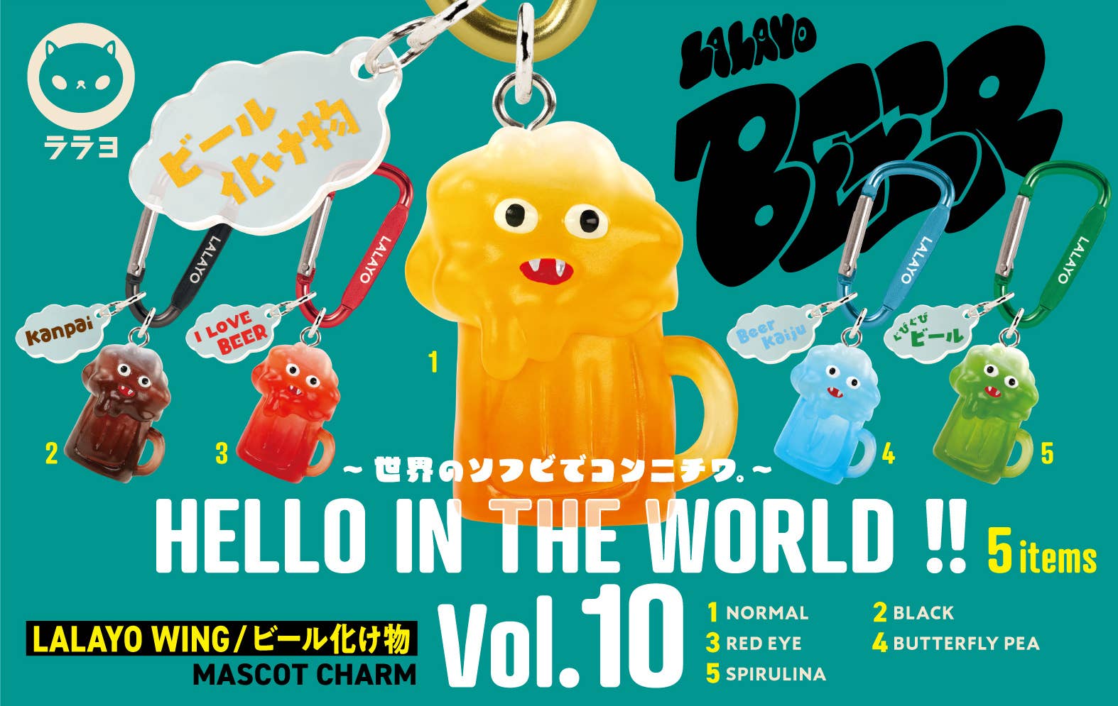 HELLO IN THE WORLD !! Vol.10 LALAYO WING / Beer Monster Mascot Charm BOX 1Box 12pcs