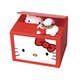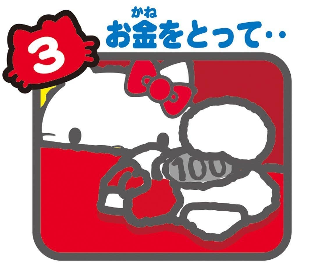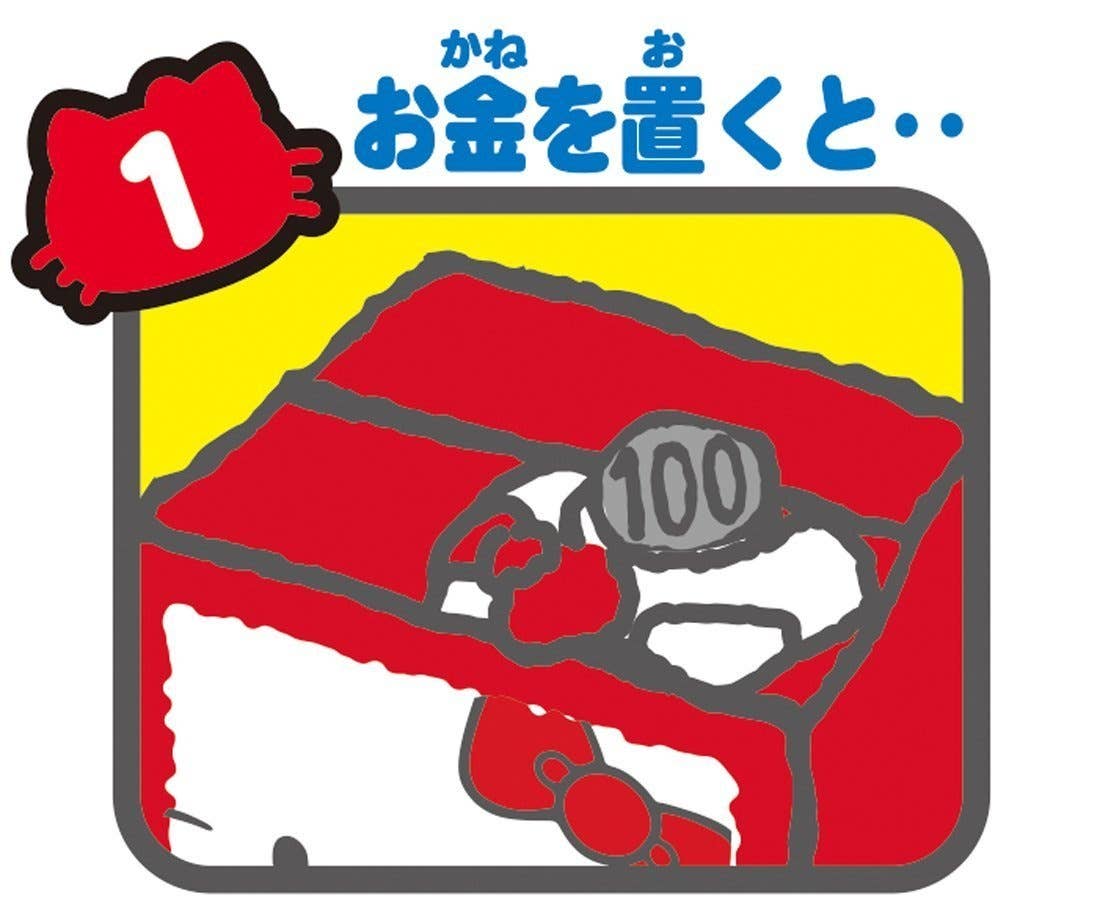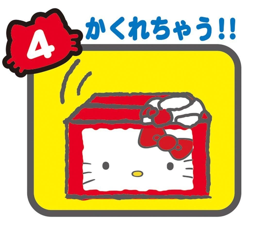 Hello Kitty wants to help you save money! Just put a coin onto the "pillow" on the front of this box-shaped bank and press down; you'll hear a "meow!", and Hello Kitty will peep out of the box. Her paw will then sneak out and sweep the coin into the box with her; the lid will then close with another "meow"! It's super-cute and fun for just about anyone ages 6 and up! Requires 2 AA-size batteries.