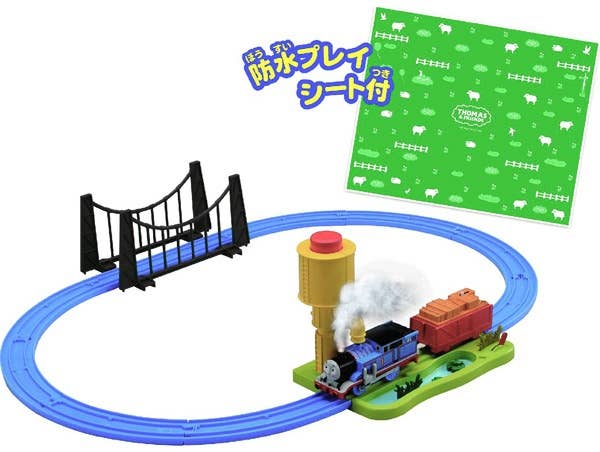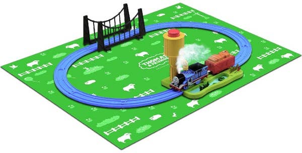 The set includes a switch to control when Thomas will stop. It also comes with Thomas the Tank Engine and a freight car, the water supply tower, an oval track, suspension bridge and a waterproof play sheet. Order today!