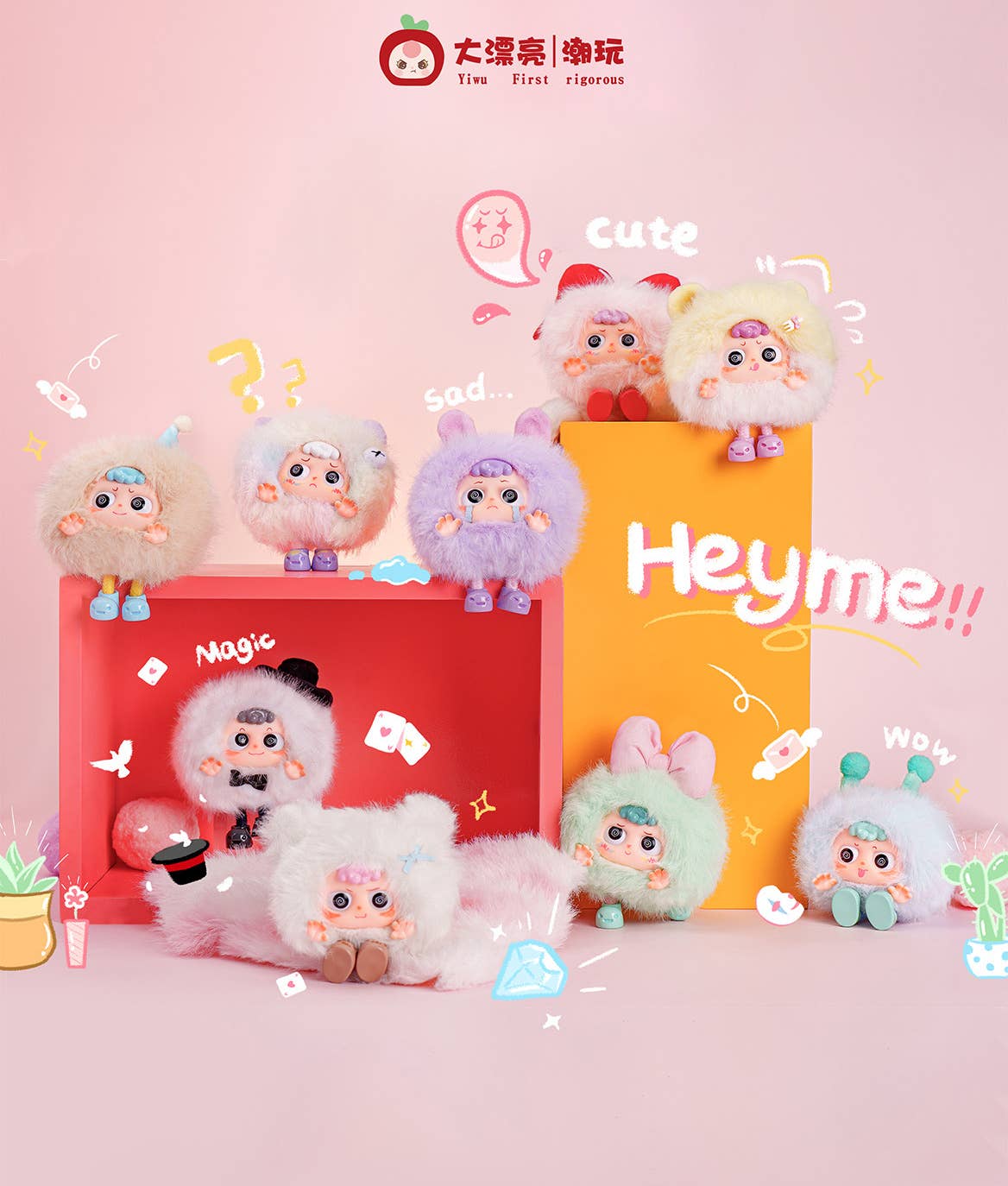 Da Piao Liang brings us the "Heyme Spookie" series of trading plushes! Their round shapes and fluffy textures are irresistible! There are eight different plushes to collect and trade, plus a secret plush; they're randomly packed in boxes of eight. Order yours today!