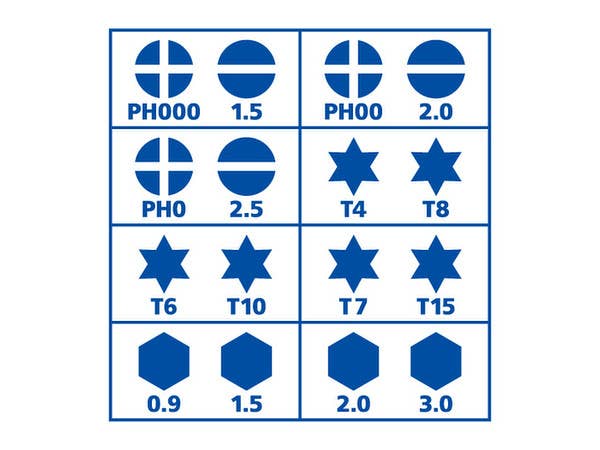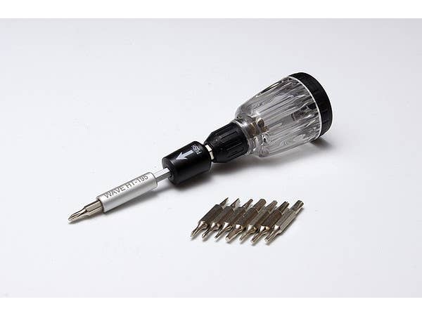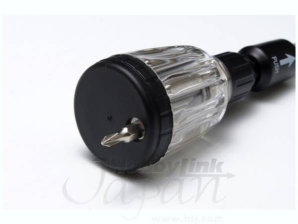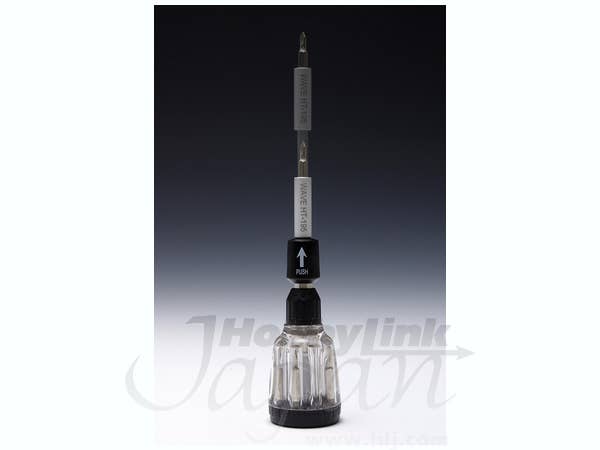 A high-quality ratchet type screwdriver with shaft hole that can accept bits 120mm to 170mm long. Inlcudes a selection of 8 double-headed bits (that's 16 heads!).