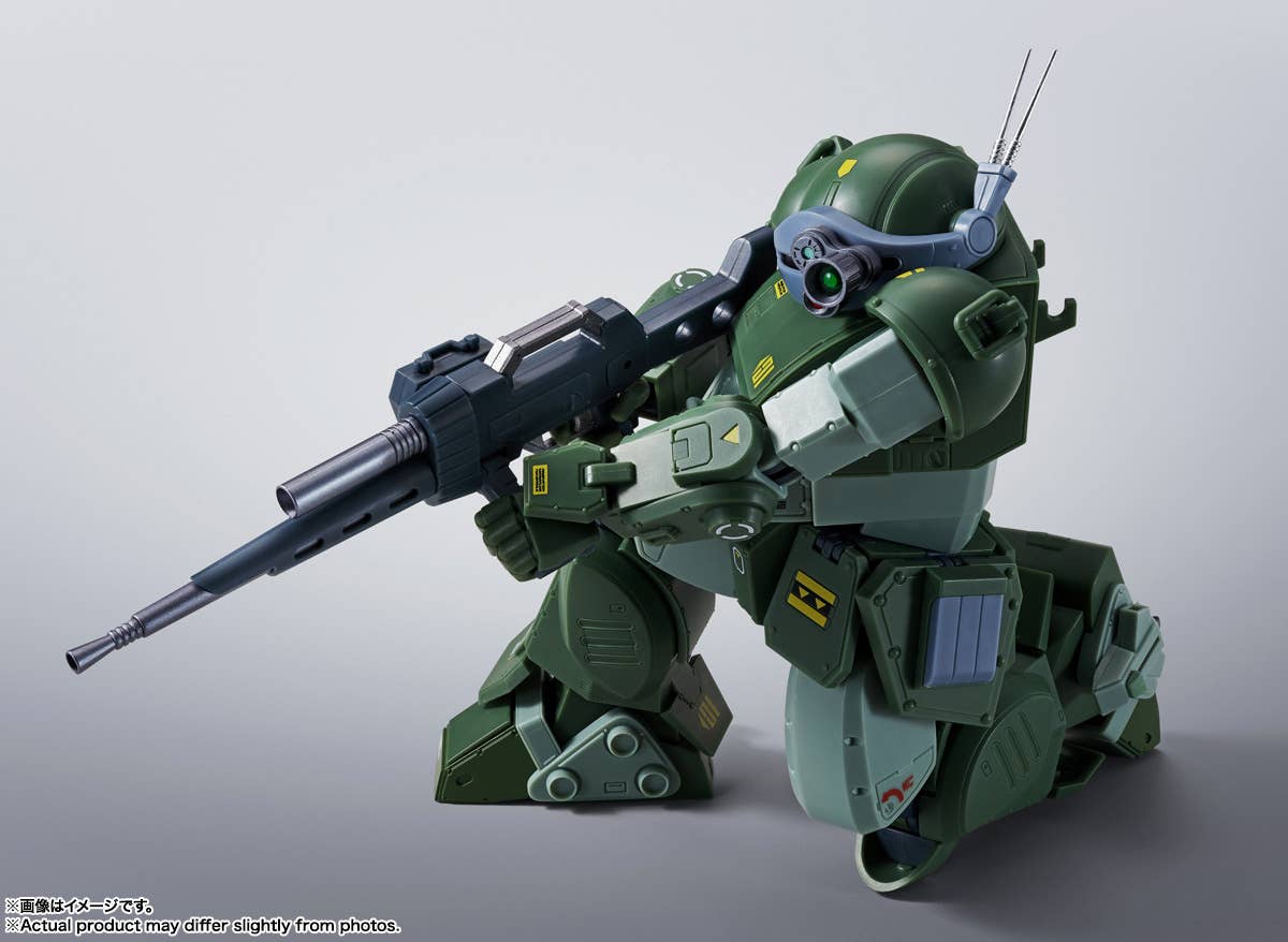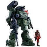 Bandai brings us an incredible new "HI-METAL R" action figure -- the Scopedog Red Shoulder Custom from "Armored Trooper Votoms"! It's equipped with a number of movable alloy joints with a focus on action -- it can even get into its boarding pose, and hold its machine gun in both hands! A posable figure of Kiriko is also included; he can board the highly detailed cockpit, and he comes with two interchangeable heads. The appeal of this mech is its excessive armament, including rocket pods, solid arm shooters, missile launchers, and side Gatling guns. This figure can also be changed to a normal Scopedog by replacing the shoulders and removing the weapon. This is the kind of amazing toy you dreamed about as a child -- order it now!