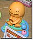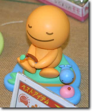 The "Hidamari no Tami" desktop toys bring a little bit of charm and a little bit of peace to your workspace. Each one runs on a solar battery, and its head nods slowly from side to side -- very relaxing! This little sweetie is the 'Orange' version, colored orange (obviously!) and holding a homemade fishing rod out over the water. He's accompanied by a tiny blue friend, who's keeping an eye on his float for him!