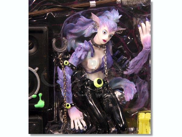 Bad-girl rockstar Howling Wolfinica performs by the light of the moon for an audience of two rats, a grinning dog, and you! She comes with great accessories--amps, her wolf guitar, a microphone on a stand (with a handy stake at the bottom!), a critter skull, a ball and chain, a spare wolf-paw hand and a claw-like weapon. Created by Yasushi Nirasawa, Wolfinica's head and arms are posable, and the claw weapon and the critter skull glow in the dark! Released in limited numbers, this horror-movie honey is ready to take center stage in your collection today! Please note that figures such as this are mass produced and as a result some inconsistencies in finish and painting may occur; these are not considered manufacturer's defects. If you absolutely must have perfection, prepare to do some touch-up work on your own.