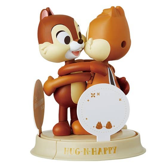 These sweet figures of cheeky chipmunks Chip and Dale are always ready for a big hug! Bring the two halves of their connected bases closer together to see them hold each other! A message card is included to display with them if you like. They're about 9cm tall, not incuding the base. They're super-cute and the perfect gift for just about anyone!