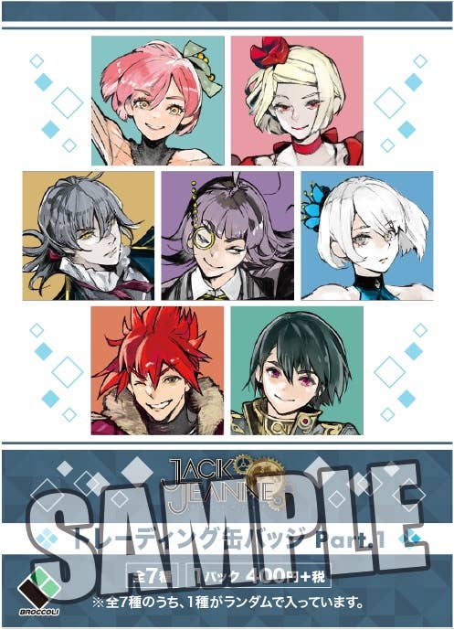 These colorful trading can badges feature characters from the Nintendo Switch game "Jack Jeanne"! There are seven different designs available, randomly packed in boxes of eight. Order yours now!