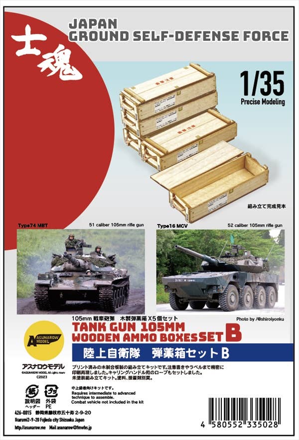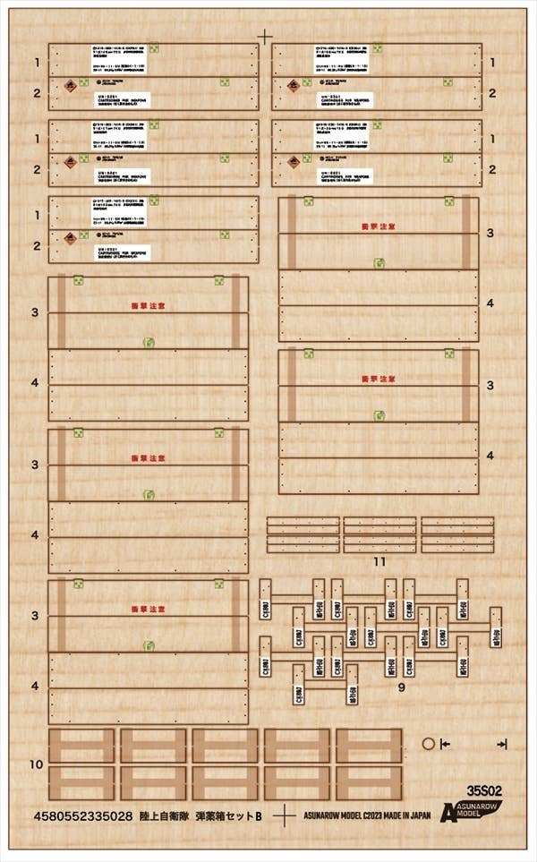 The 1/35 ammunition box set is made of Shizuoka-made veneer with fine prints and precision laser-cut.
