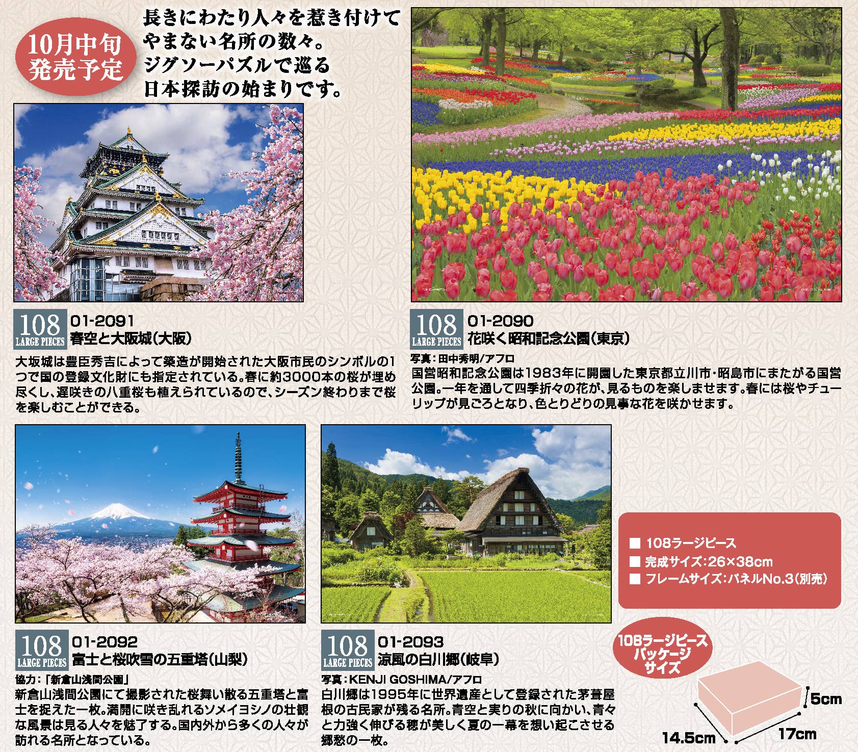 Jigsaw Puzzle: Spring Sky and Osaka Castle (Osaka) 108P (26 x 38cm)
