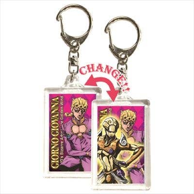 This keychain from part 5 of "JoJo's Bizarre Adventure," "Golden Wind," features protagonist Giorno Giovanna. If you change the angle of the charm, Giorno's stand, Gold Experience, will appear, too! Comes with an attached C-hook clasp.