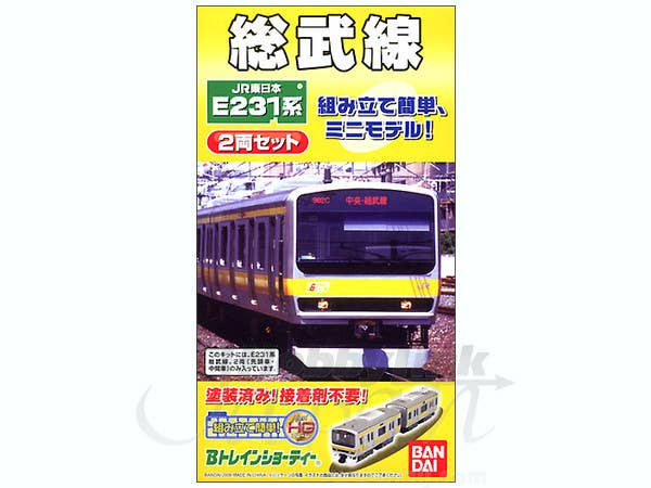 Can't stop B-Train Shorty! These are cute li'l scrunched-up versions of real Japanese trains. This kit features two cars of the very famous E231-Series Sobu Line train. These snap-together plastic kits are compatible with N-gauge railway accessories and setups.