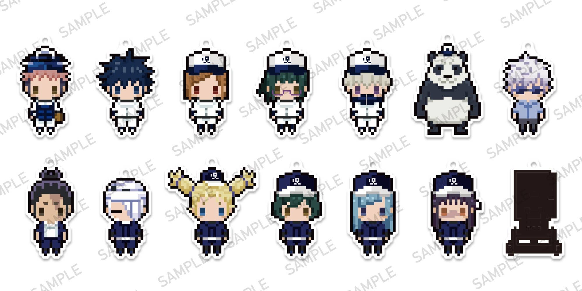 This lineup of "Jujutsu Kaisen" characters illustrated in 8-bit style is colorful and fun! Each one has a strap attached, so you can use it on your keys, bag, backpack, or zipper pull, and there are 14 different characters available; you'll get one of each in the box. Order yours today!