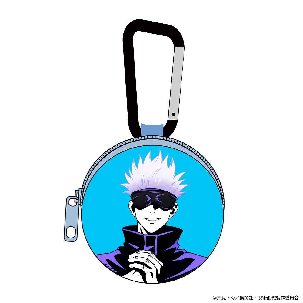 This earphone pouch features Satoru Gojo from "Jujutsu Kaisen;" it's the perfect size for your earphones or other small accessories. Its round shape with a zipper around the edge makes it easy to remove what's inside, and it comes with a carabiner to make it super-convenient to attach it to a bag or belt loop. Order yours today!