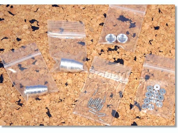 Here's a basic set of machined aluminum thruster bells intended for use on Bandai's 1/100 MG Kaempfer model kit (sold separately)! Included are four large k-bells, four medium k-bells, one small k-bell, two flat k-bells, 10 k-baffles, one g-baffle, 15 long socket pins, and four short socket pins. This set will replace each thruster on MG Kaempfer with aluminum versions. Glue is required during assembly. An English instruction sheet is provided. The first two photos shown below are for reference only.