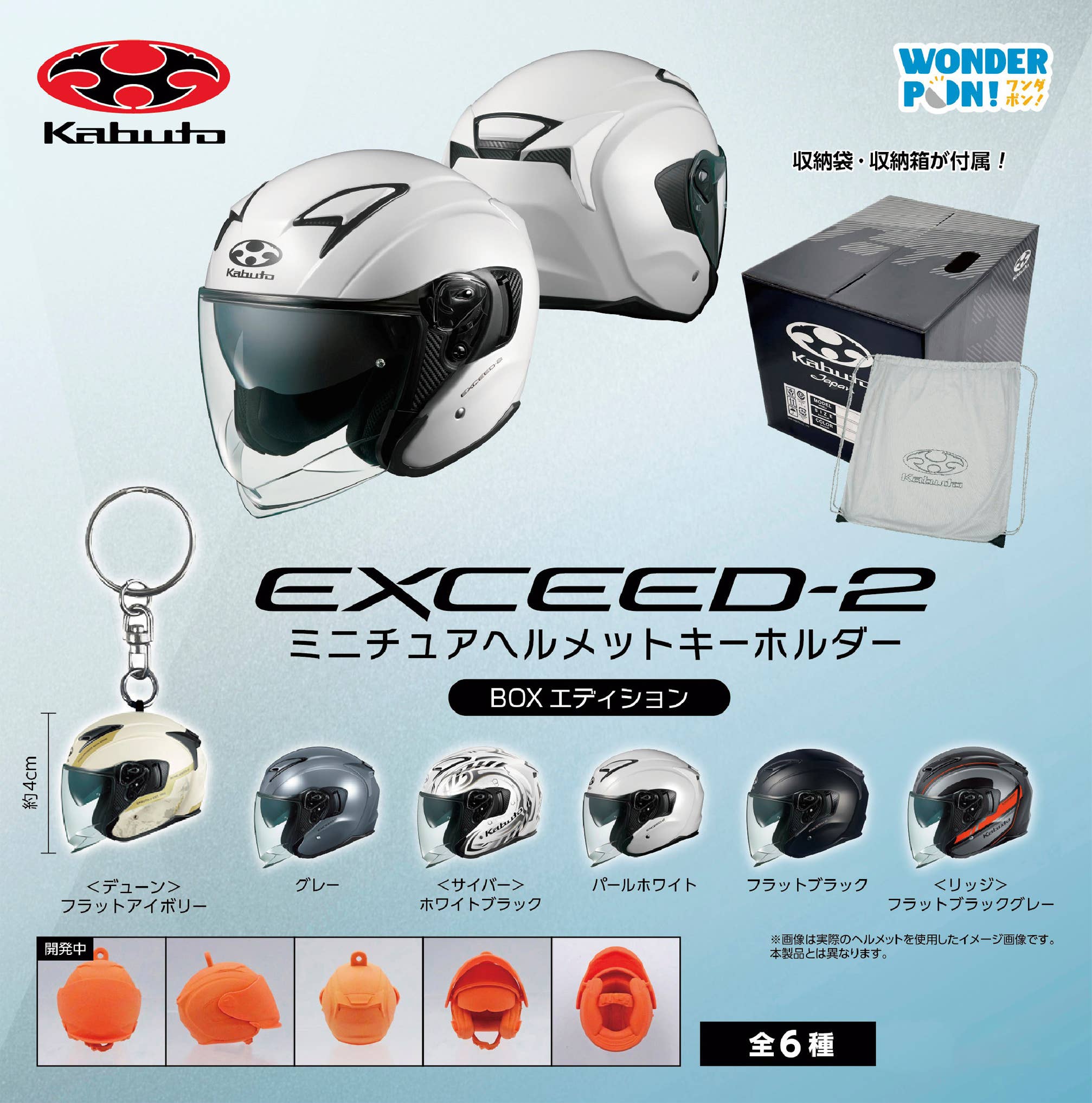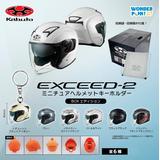 The Kabuto EXCEED-2 open-face helmet with an inner sunshade has garnered many fans. Now Motos Industria recreates its innovative aerodynamic form in miniature for your collection! The box version comes with a storage box and bag for the miniature helmet. The inner sunshade is fixed in the extended position, and the shield is movable. You can use them as a keychain, or display them! There are six different helmets to collect and trade, randomly packed in boxes of six. Order these exactingly detailed miniatures for your own collection today!