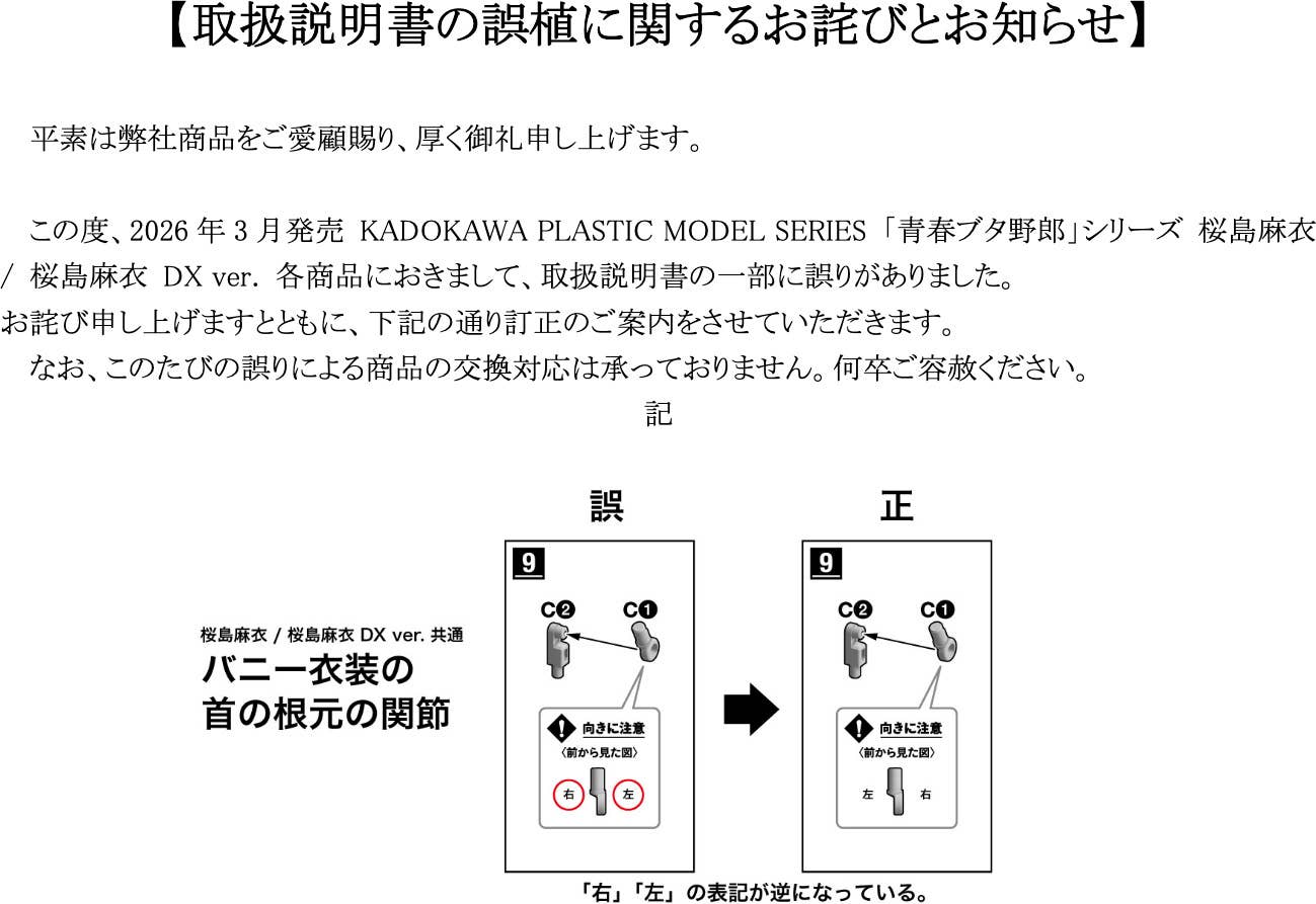 Mai Sakurajima from the "Rascal Does Not Dream" TV anime series joins Kadokawa's "Plastic Model Series" of action-figure model kits!