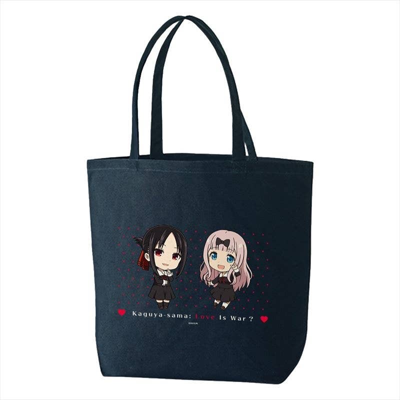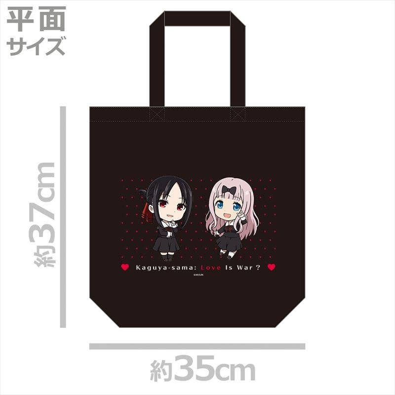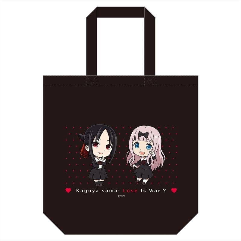 A black tote bag featuring full color artwork of all your favorite "Kaguya-sama: Love Is War" characters together in an adorable chibi style. Carry around your belongings safely and securely with this stylish tote. Order yours today!