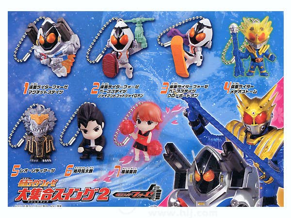 Here's a great collectible series of mascot keychains featuring favorites from "Kamen Rider Fourze"! Each packaged in a gashapon "egg," they're sold by the randomly packed box of 10.