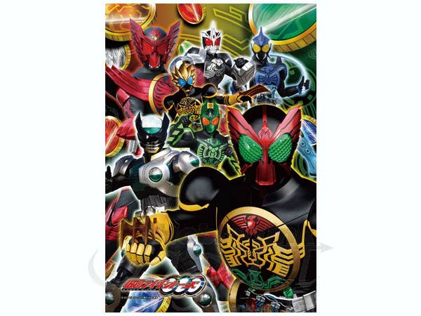 This colorful image is a great combo of Kamen Rider OOO's many combos! This jigsaw puzzle has 108 big-size pieces, and will measure 26cm by 38cm when completed.