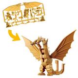 The parts are arranged on the plastic runners in the shape of the katakana letters spelling "King Ghidorah." By cutting out the parts and assembling them, you can create a fully movable King Ghidorah figure with movable neck, wings, and tail.