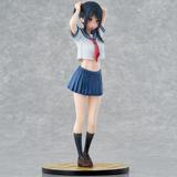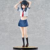 Kantoku made a splash in 2019 when he featured this young lady as the cover girl on his book "Sailor Suit Mannaka" -- and now she's ready to join your collection! Seen getting ready for school in the morning, she's concentrating on her twin-tails hairdo, and the lower hem of her uniform shirt raises slightly to reveal her smooth stomach and cute navel. Her top and skirt can be removed if you'd like to display her in her sweet lingerie, too! A base is included. Take her home with you today!