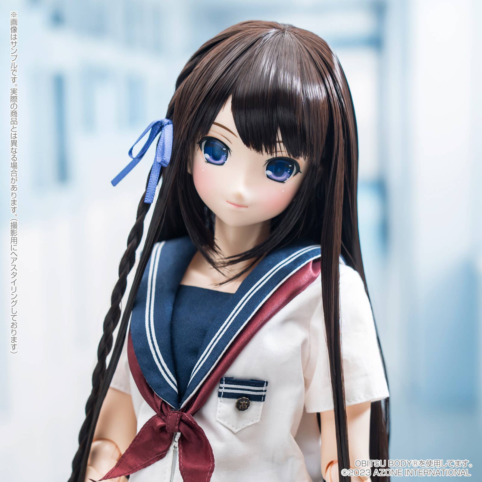 The Kino Kazuhara School Uniform Collection series from Azone is very popular for its realistic school uniforms; now, the active female high-school student talents from the idol management group PH Production appear in Azone's 1/3-scale doll lineup! Nanaka Anno is built on an AZ02 body (with Obitsu 48cm lower legs) with a C bustline, and she wears the summer uniform of Kazuharu Seishin Girls' High School! Her long, long hair includes a single thin braid as an accent, and she wears a blue ribbon that matches the color of her eyes. Order her for your own doll family today!