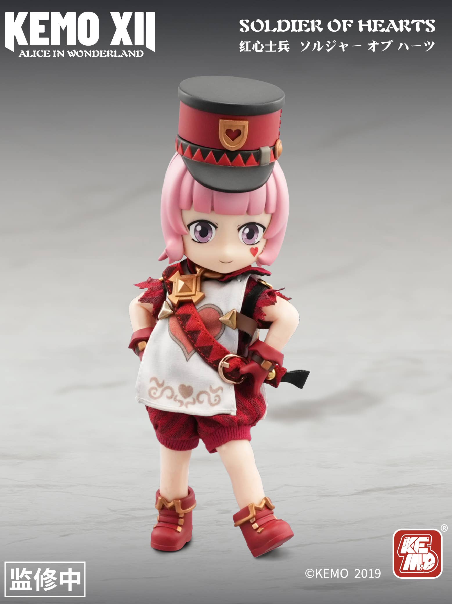 Kemo brings characters from the classic story "Alice in Wonderland" into their "KEMO XII DOLL" lineup! An alloy skeleton is built into the doll's seamless body, and a total of 24 points of articulation gives the doll a wide range of motion while allowing a natural appearance. The Soldier of Hearts comes with three interchangeable faces, three pairs of interchangeable hands, a spear and a sword, as well as a stand with a posing arm for display. You'll love the cute and unique design -- order yours today!