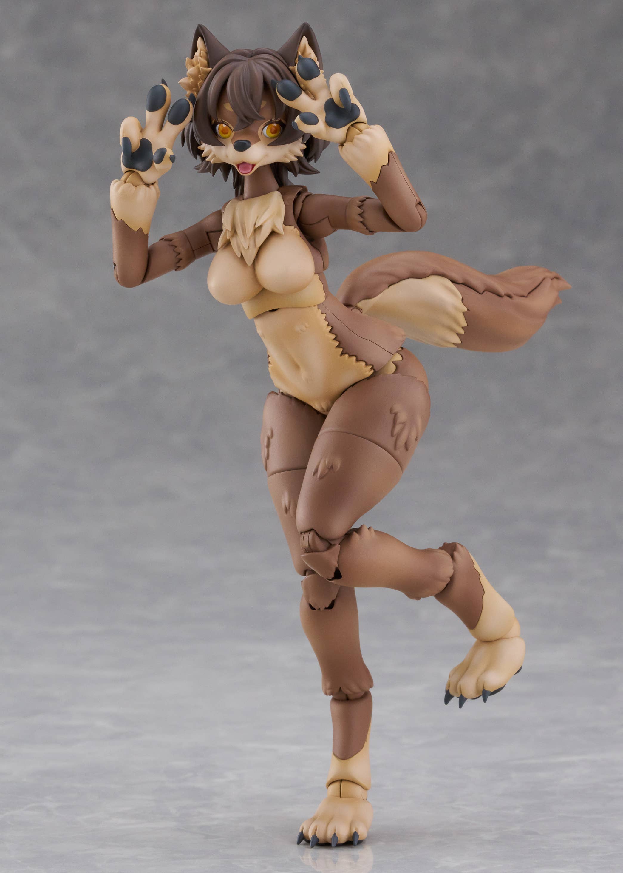 This model kit snaps together so glue isn't needed. The main body parts are "High Kemo," with face and limb parts included for "Medium Kemo" transformation. A total of four pre-painted faces are included; the "High Kemo" face features movable eyeballs and a bigger muzzle. Four "High Kemo" hand parts and five "Medium Kemo" hand parts are included. The posable legs feature the "Kemo Fling System," which enhances action poses! Customize your figure further by combining it with separately-sold main kits and optional parts -- order yours today!