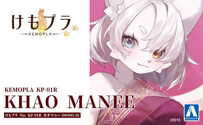 Khao Manee helps launch Aoshima's new "KEMOPLA" customizable plastic model kit lineup! This series allows you to create your very own furry friend! The "furry level" indicates the ratio of furry to human elements, and the type of furry can be freely adjusted by rearranging parts. With the unique silhouette of a furry that's unlike any other, and a wide variety of combinations that allow you to create your ideal look, you can enjoy creating your own original character!
