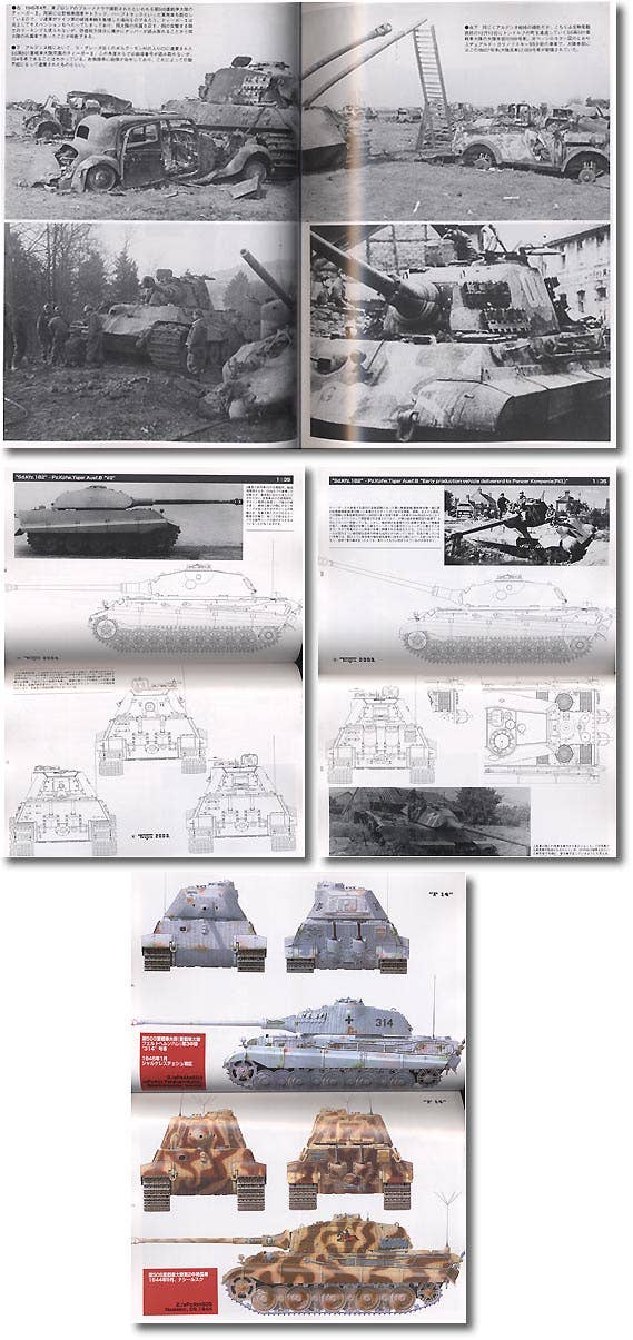 A great book full of technical drawings, color illustrations, and b&w photos of the Tiger II. All text in Japanese.