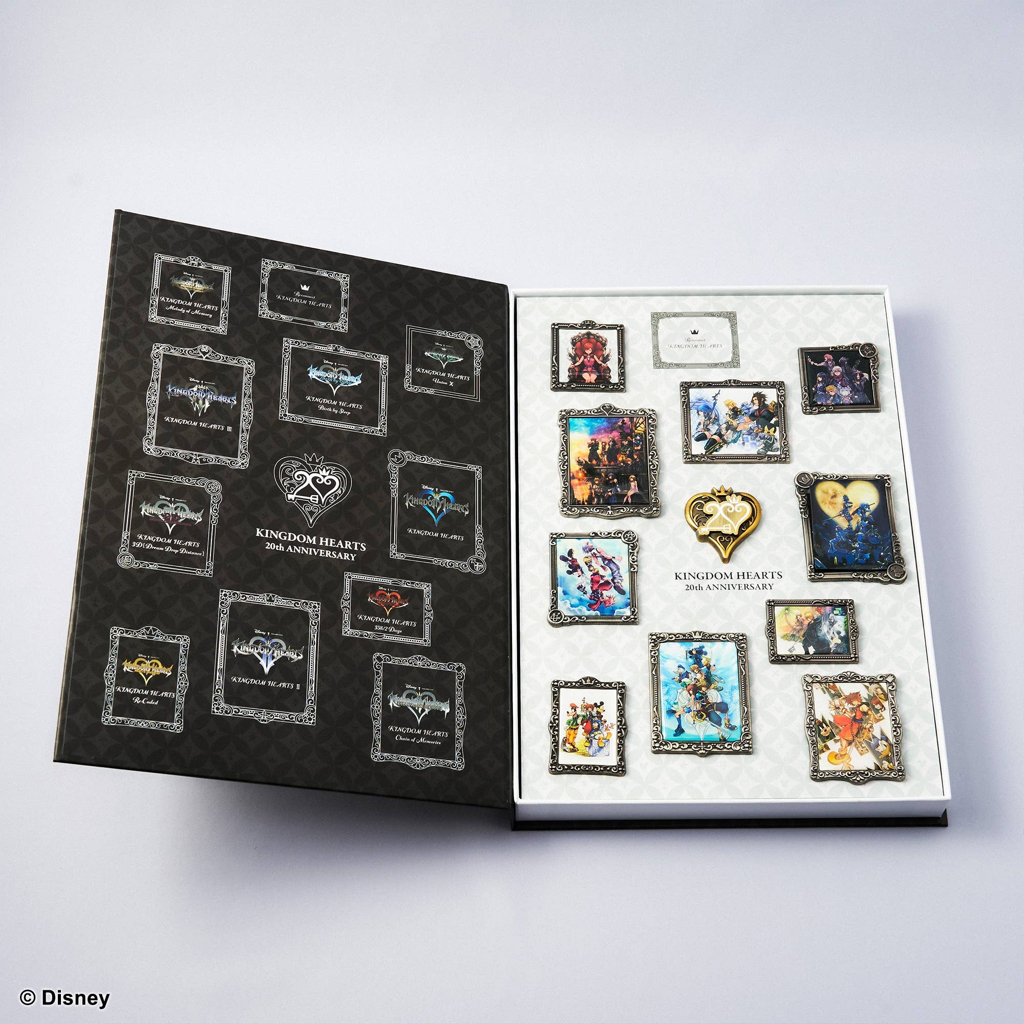 Disney is well known for the quality of their collector pins, so this set of 11 pins to celebrate the 20th anniversary of the beloved "Kingdom Hearts" games from Square Enix is a must-have for any collector! This collection of colorful pins comes in a luxurious book-shaped box that's perfect to display just as it is. Place your order today!