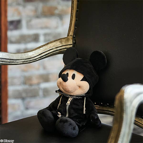 King Mickey is backl This cute plush toy from Square Enix reproduces Mickey Mouse as he appears as the King in "Kingdom Hearts." The chain around his neck and the zipper pulls are metal. Order him today!