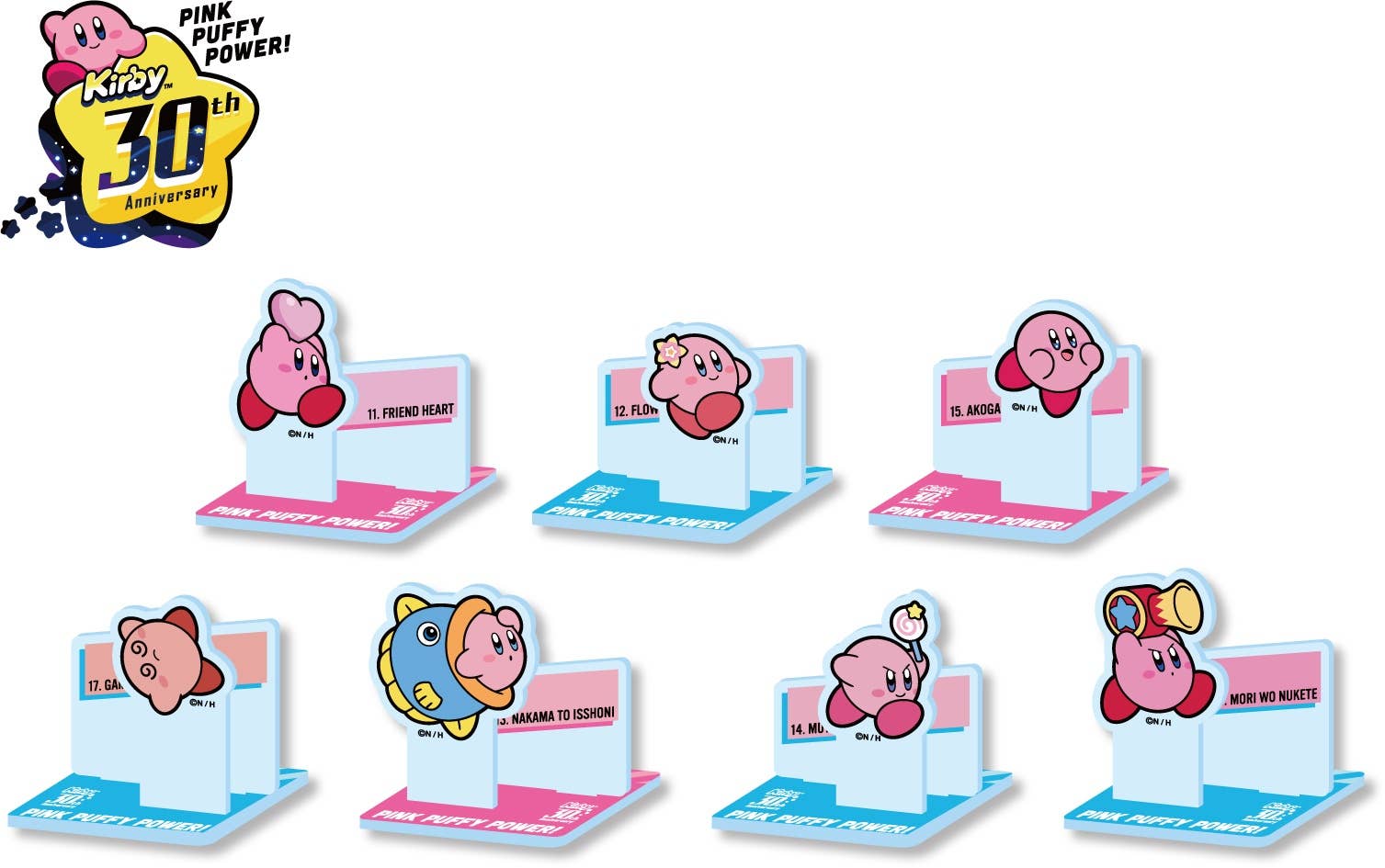 The "Kirby" games celebrate their 30th anniversary in 2022, and you can celebrate with this awesome lineup of acrylic stands! Arrange them all together for an effect like a three-dimensional picture book! There are seven different designs, randomly packed in boxes of seven. Place your order today!