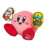 This cute plushie features Kirby holding two characters in his hands and measures about 11cm tall.
