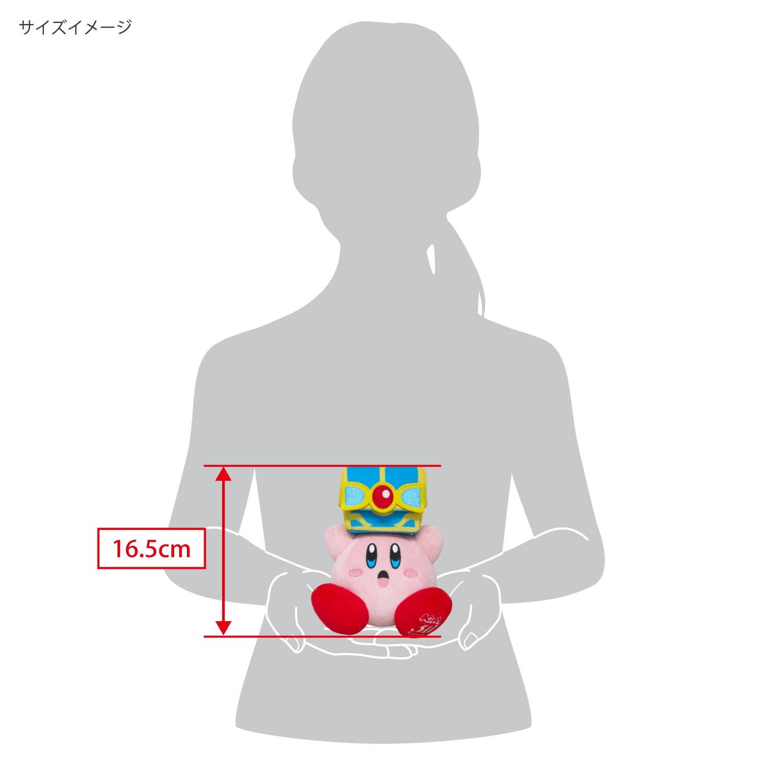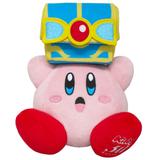 This cute plushie features Kirby holding a treasure chest over his head and measures about 16.5cm tall.
