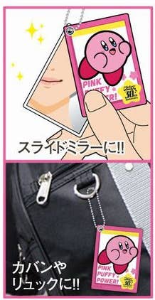 Celebrate Kirby's 30th anniversary with these clever little slide mirrors! Each is mounted to a ball chain so you can attach it to your keys or purse strap and take it everywhere you go; they're great for checking your look anytime, and also great for signaling rescuers if you happen to get marooned on a desert island! There are ten different designs, and they're randomly packed in boxes of ten. Order yours today!