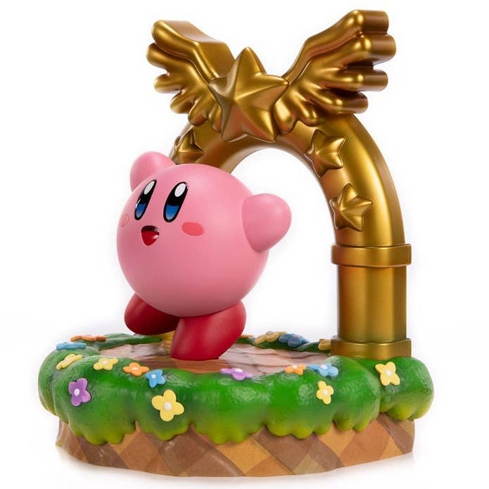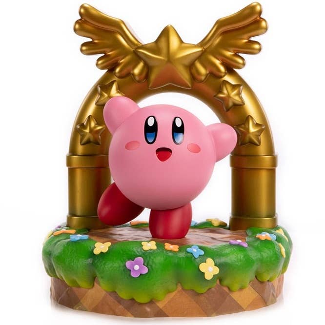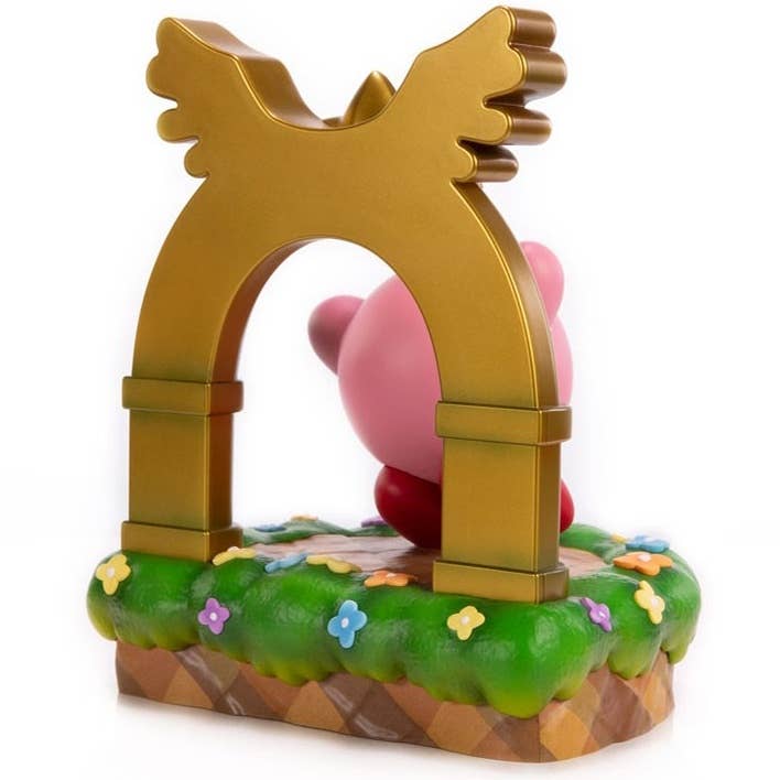Nintendo's Kirby has been highly popular ever since he made his debut in "Kirby's Dream Land" in 1992, and now everyone's favorite round pink hero gets a beautiful statue from First 4 Figures! He's seen here doing his victory dance in front of the gate to Galt Villa after defeating the boss. You'll love this figure's true-to-game design and brilliant colors -- add it to your collection today!