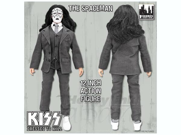 The "Out of This World" guitarist known as "The Spaceman" is highly detailed and features 16 points of articulation. The Spaceman's face paint and outfit were derived from KISS's album entitled "Dressed to Kill" that was released on March 19th, 1975. His futuristic style comes complete with a grayscale suit, as well as his white dress shoes!